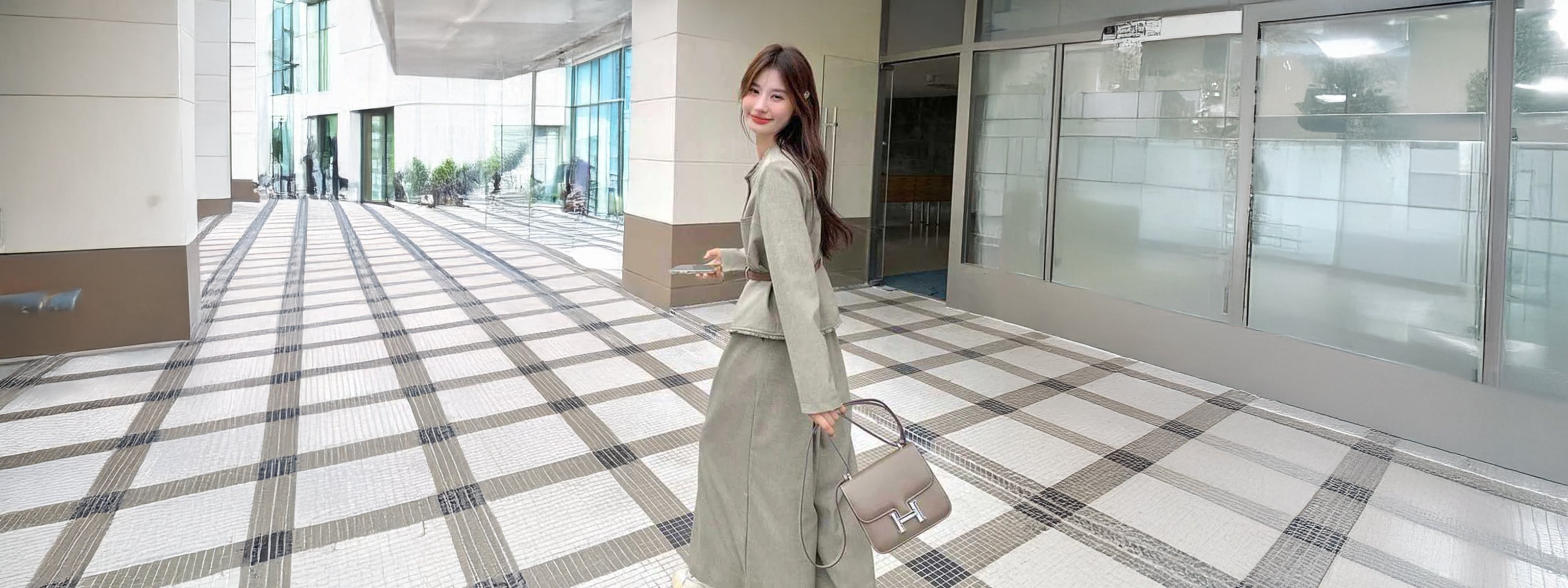 ツイードベスト×プリーツスカートワンピース(2colors)