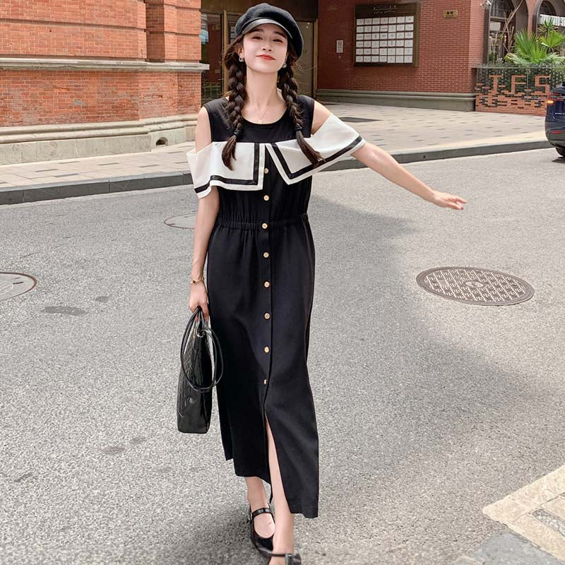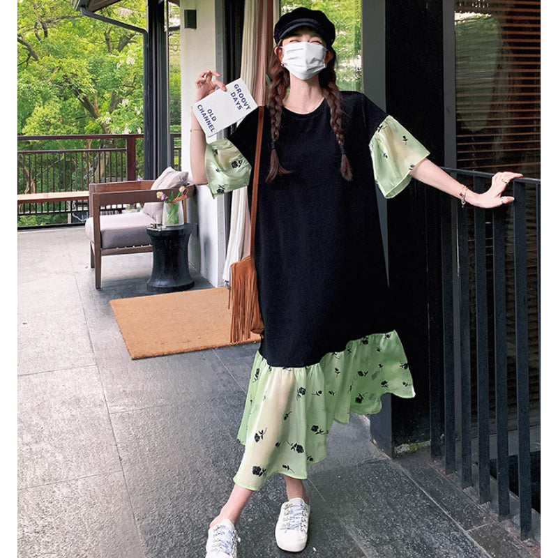 ブラックとミントグリーンのバイカラーフレアワンピース。